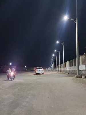 這是中東地區(qū)最新的項(xiàng)目,位于也門(mén)哈德拉穆特市。該項(xiàng)目選擇的模型是80W的和諧二體化太陽(yáng)能路燈,安裝在8M的燈桿上,整體采用高轉(zhuǎn)化率單晶硅太陽(yáng)能板、高光效LED模組、智能電池管理系統(tǒng)、高效控制器。蓄電池和控制器都集成在太陽(yáng)能板上,同時(shí)LED采用高強(qiáng)度進(jìn)口PC光學(xué)透鏡和蝙蝠翼型配光設(shè)計(jì),提供均勻布光。